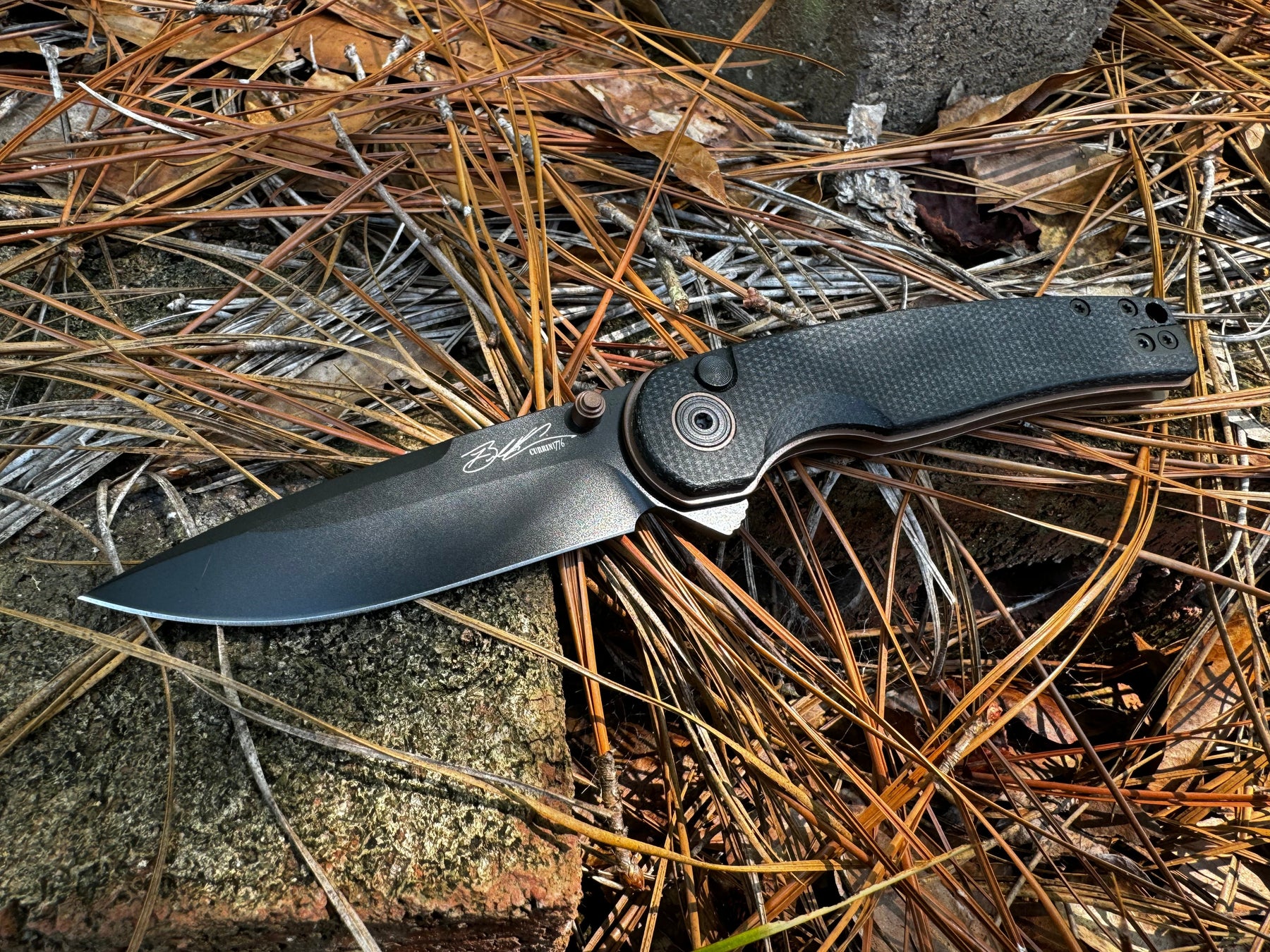 The button lock mechanism and ambidextrous pocket clip make this knife easy and safe to use for everyone. The ball bearing pivot ensures smooth and rapid blade deployment, making it a reliable tool for any task. The bronze-colored hardware and liners are inspired by the tannic waters of the Savannah River, reflecting Brandon's deep connection to nature.